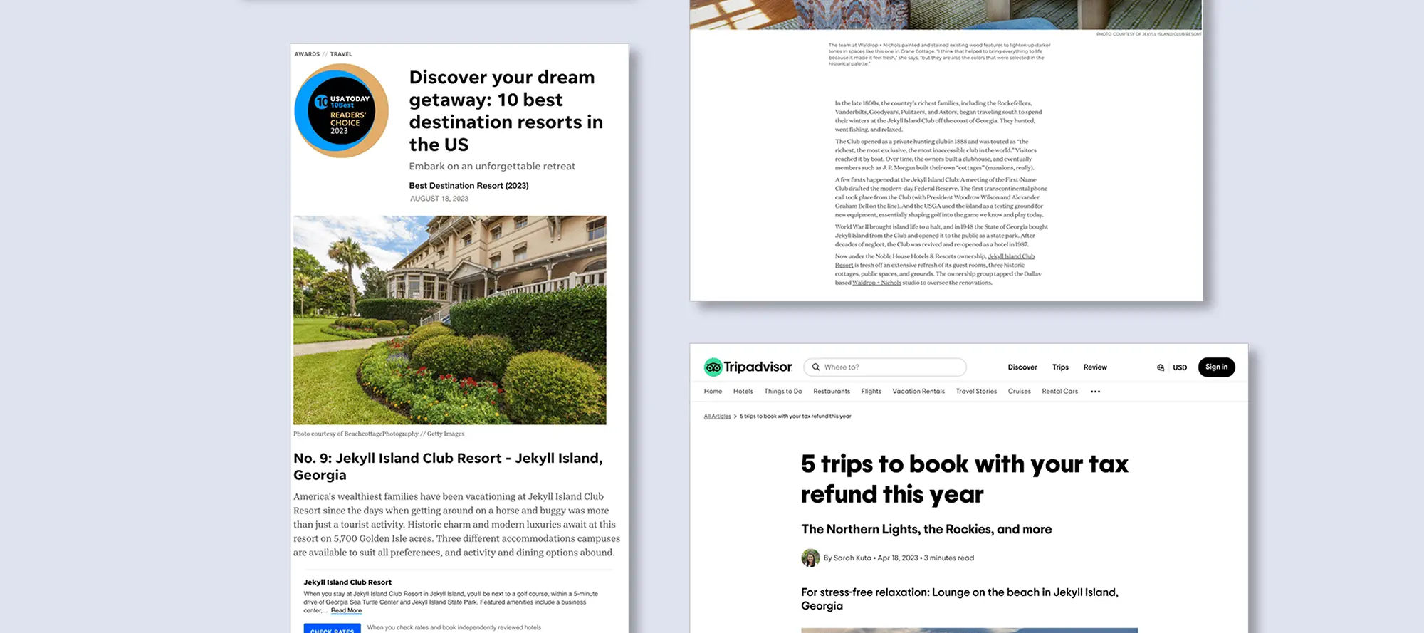 Global PR reach incl. Garden & Gun, Travel & Leisure, Southern Living, Forbes, The Knot, AJC, USA Today, and more.