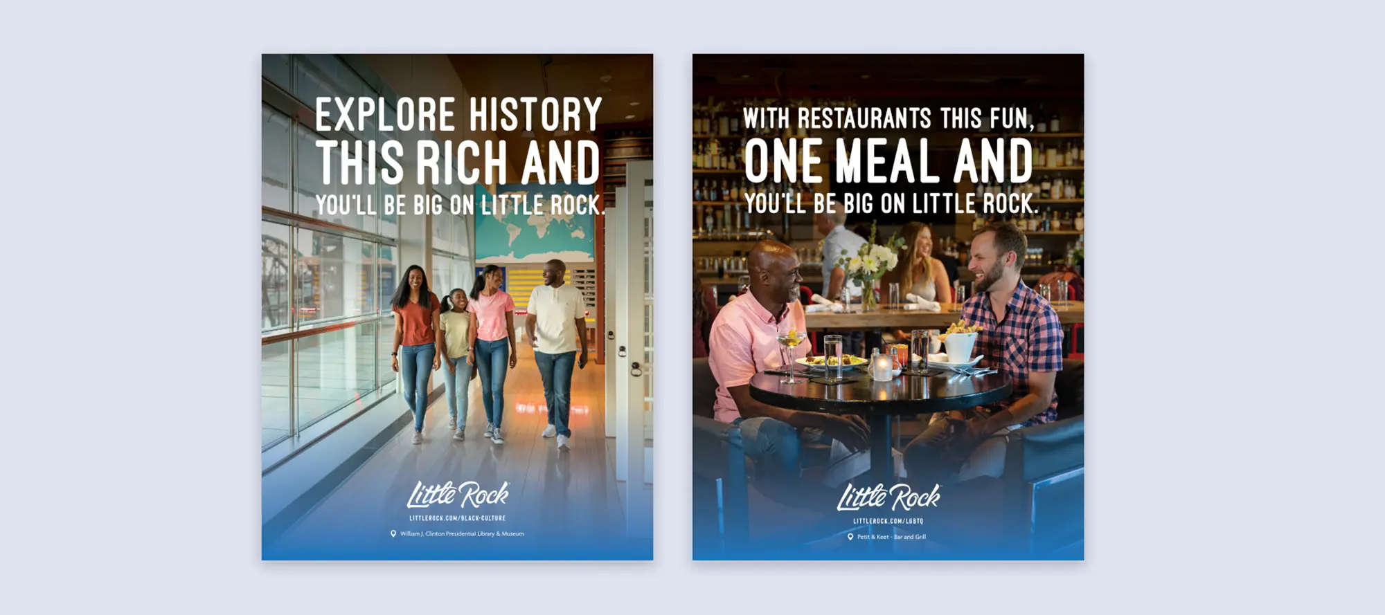 After running a successful “Southern Accent” campaign for more than 6 years, Little Rock was ready to evolve and elevate the destination’s brand positioning. Research led us to revive a prior community-pride campaign titled “Big On Little Rock.” The fun and catchy line better reflected the destination’s offerings and appeal while emotionally connecting with leisure and business visitors – all while helping inspire Little Rock residents to become brand ambassadors. One of our key “Big on Little Rock” efforts was reaching black consumers in HBCU cities, inspiring them to visit the history and culture rich city. The focused campaign won industry awards and continues to evolve with national influencers and other initiatives.